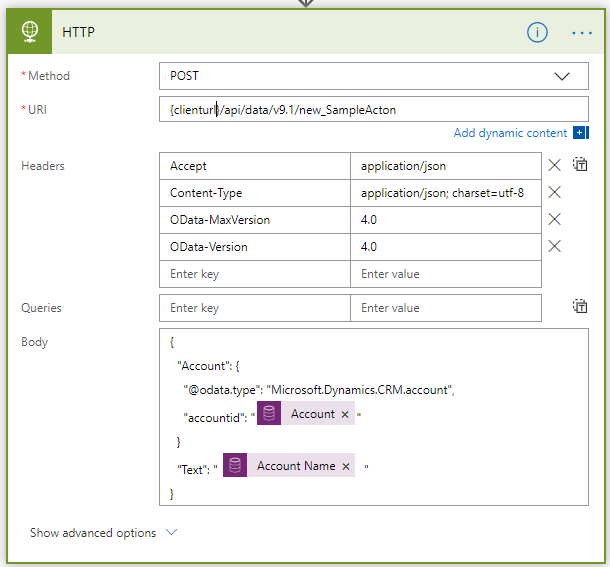 How to call a Dynamics 365 Action with Input parameters from Logic App or Microsoft Flow