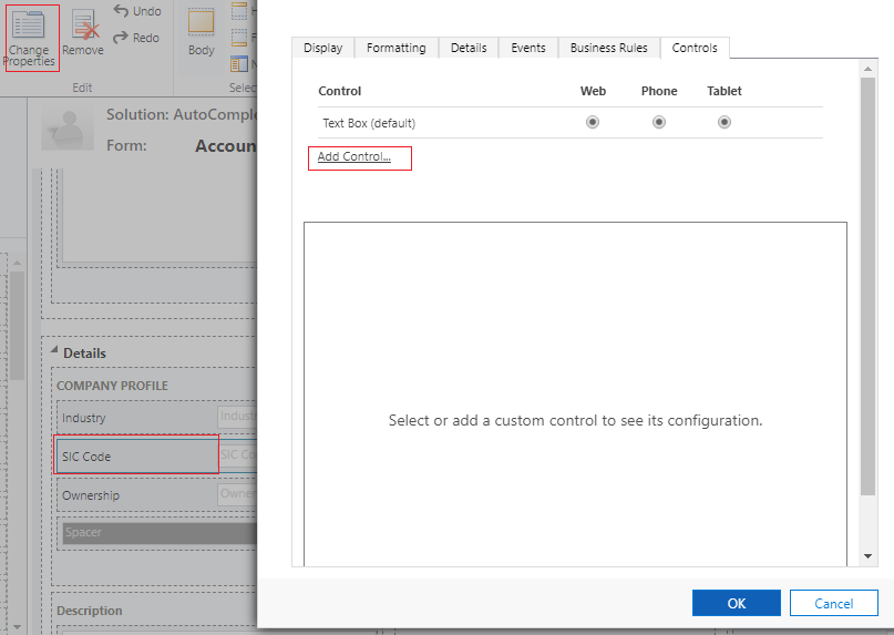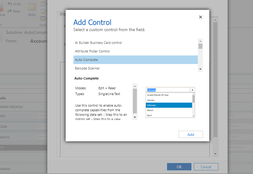 So, we need to use Auto-Complete control instead. It is similar to Option set but can use entity and