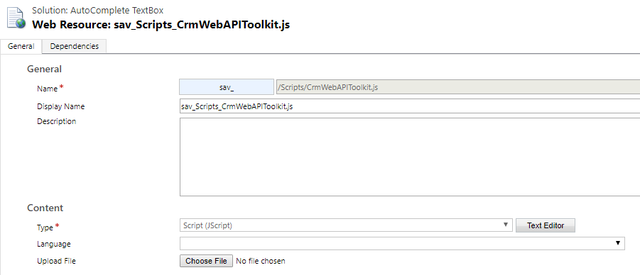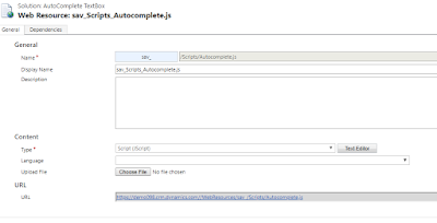 We need JavaScript web resource to retrieve values from source entity and function to add event to our textbox.