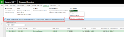 Now let’s email the Customer invoice report and check how the whole process looks like. Assume that Print management is configured to email invoices. Open Invoice journal and click Use print management.