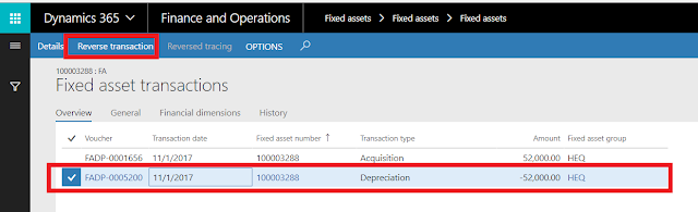 How To Reverse Fixed Asset Depreciation in Microsoft Dynamics 365?