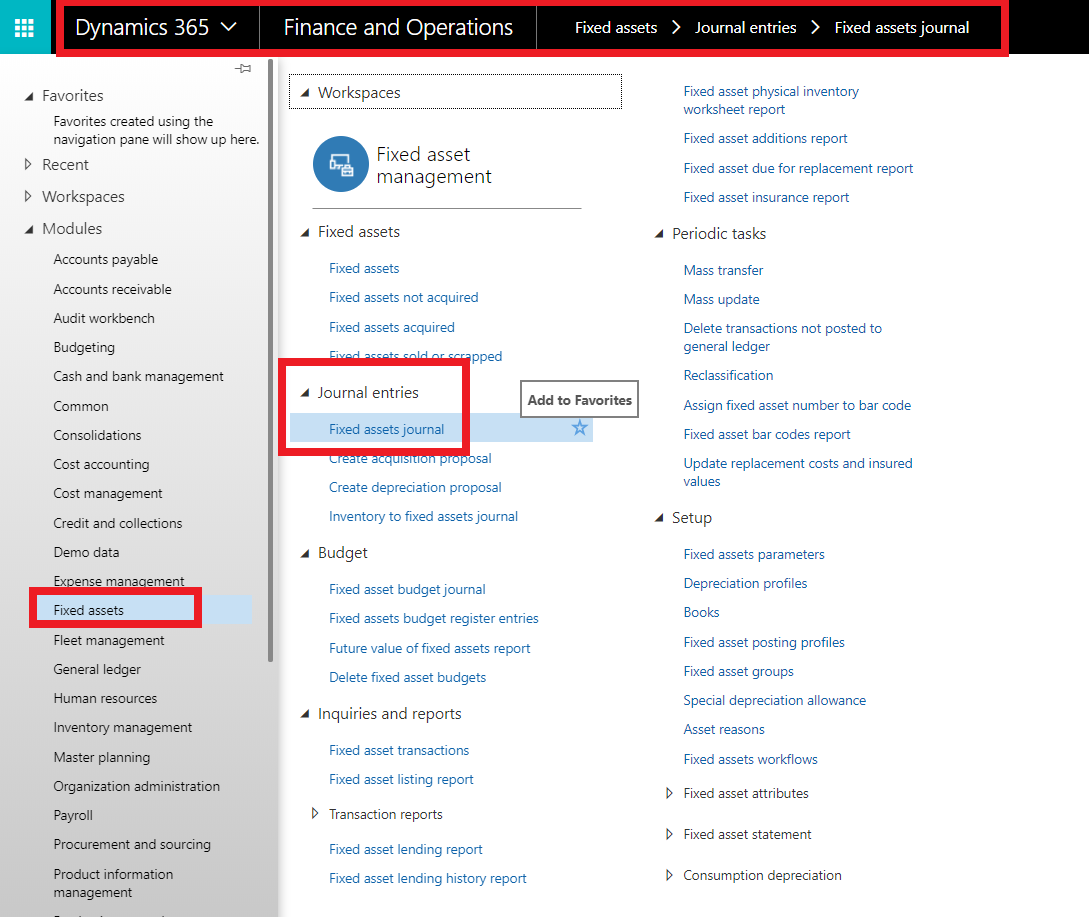 2- Go to Fixed assets / Fixed assets / Fixed assets / Fixed assets