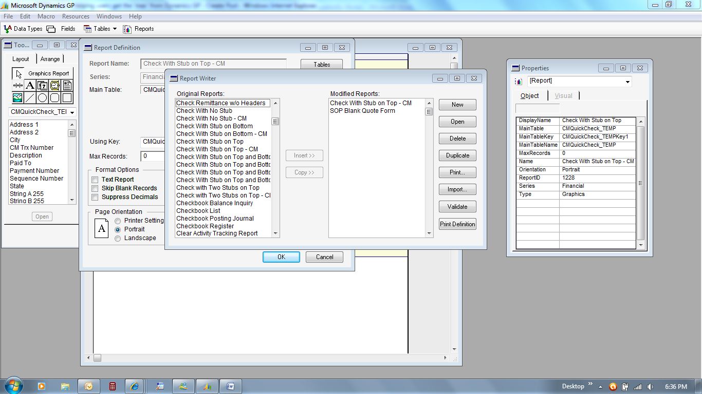 If you need to modify the graphical version of the check, look for Check with Stub on Top and Bottom - Graphical - CM. Regardless of the check format you want to modify, if it's a Miscellaneous Check format, you must select one of the formats that ends in - CM which indicates it's used in the Cash Management (Banking) module.
