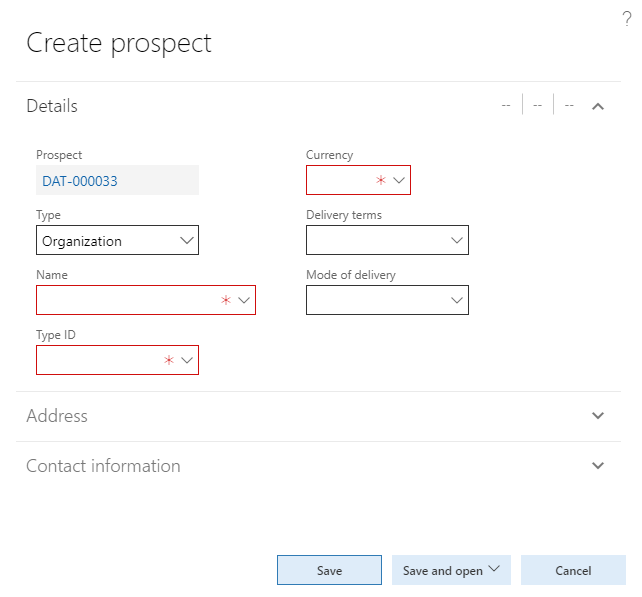 Root data source is instantiated based on the caller. Some fields are common as they relate to DirParty framework some fields are dynamically added and it was not so obvious how they are added. In this case, fields Prospect, Type ID, Currency, Delivery terms and Mode of delivery are dynamically added fields.