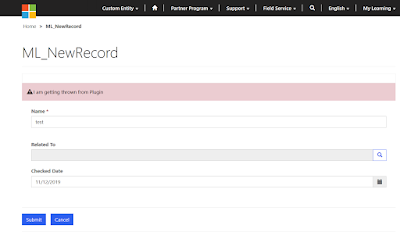 Today I was working something on Portal and we do have some validation at the plugin and throwing an InvalidPluginException based on some business logic. However on the Portal, we were not seeing the same message. It was saying something as "An unknown failure has occureed. Error ID ...".