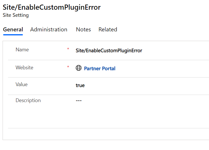 Show Plugin Error Message on Dynamics Portals - Site/EnableCustomPluginError Setting
