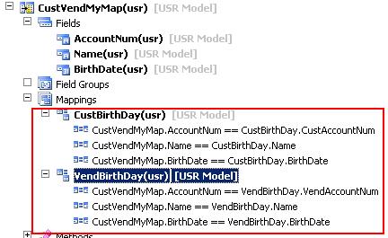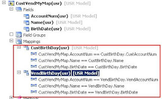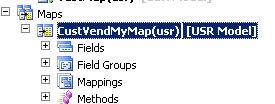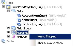 2. En el AOT expandir el Data Dictionary, click derecho en Mapsy luego en Nuevo Mapa. Establecer el nombre del mapa CustVendMyMap