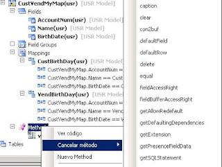 9. En el nuevo Mapa creado nos ubicamos en el nodo Methods, click derecho y seleccionamos cancelar método y luego validateWrite