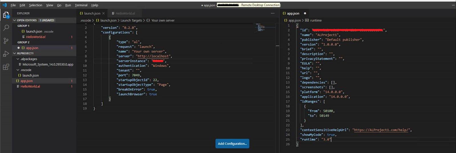 | App.json and Launch.json |