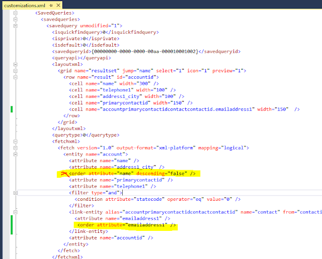 Remove other working order from fetchxml<order attribute="name"descending="false" />