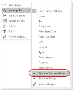 As he instructs, I also enabled threading, "Show as Conversations" in Outlook, which is something I have resisted for years. I didn't like threading because when my Inbox was filled with hundreds of messages, the threading often made it difficult to review messages. But if my Inbox stays lean, threading should help me better deal with the occasional flurries of Reply All conversations and start with the last message in the thread.