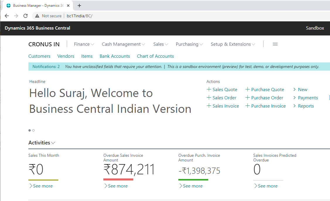 Dynamics 365 Business Central Indian Version Preview