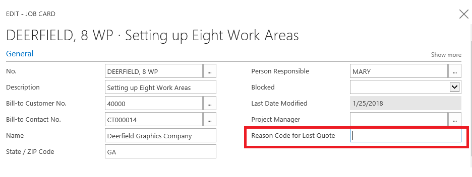 Reason Code for Lost Quote field is added (I couldn’t see dropdown option. Need to investigate.)