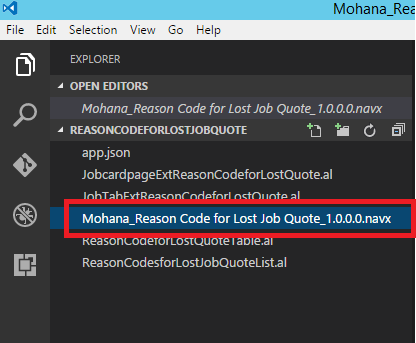 Open the Visual studio code and Folder ReasonCodeforLostJobQuote which we created before if it is not open.