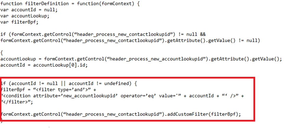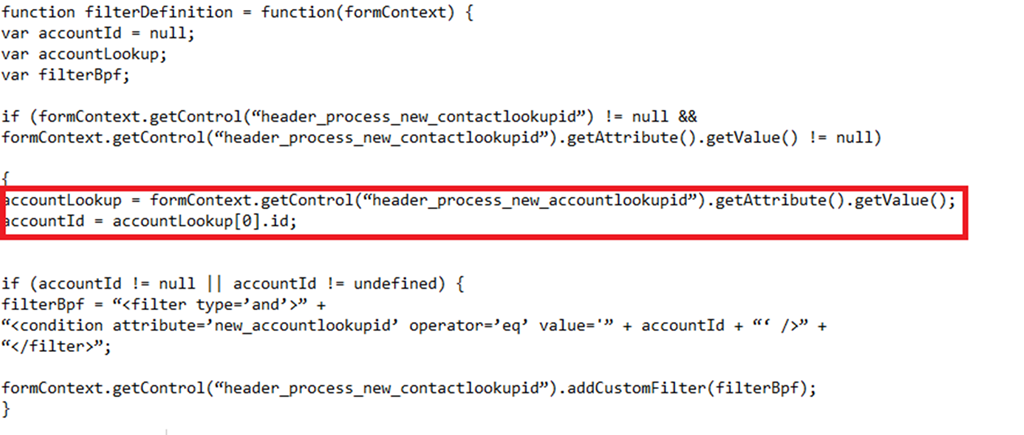 Now we have to define the filter called filterDefinition by first retrieving the value entered in the Account Control: