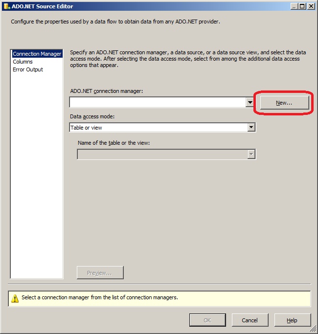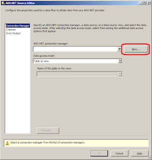 Open DataFlow task with doubleclick and add ADO.Net to your DataFlow: