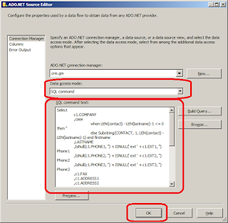 Configure selection of information from Goldmine DB (using select statement that I provided in step 1 - you can recheck that your statement is valid and data is correct using Preview button):