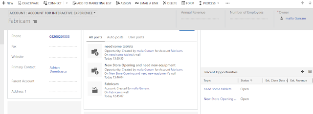 Open an account record in Dynamics 365 and inside the account record,