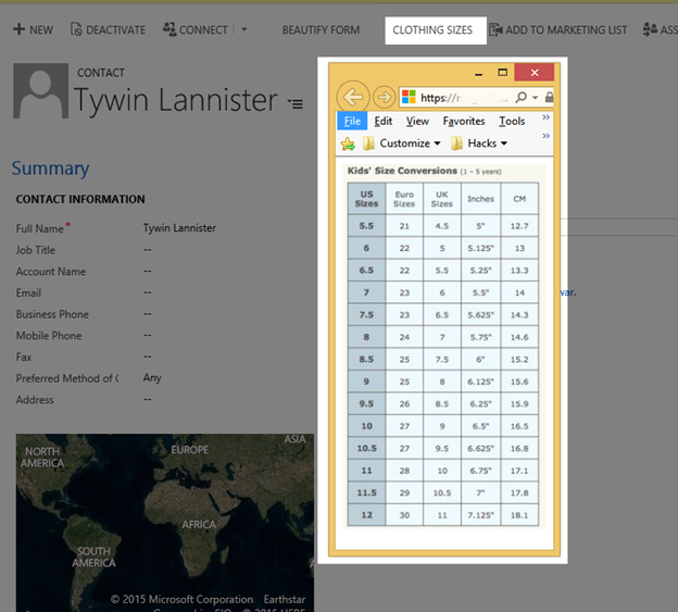 Assume you have a retail clothing company and agents receive calls from customers asking about clothing size. The company deals with international customers, which means agents have to convert from different sizes (UK, Euro or US).