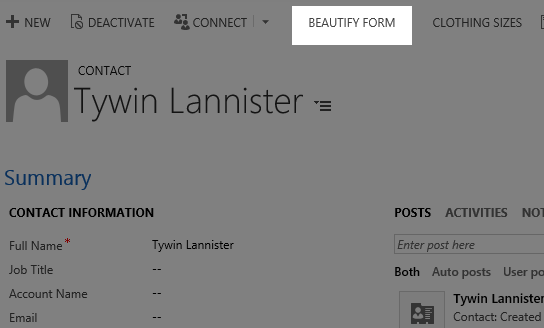 I placed another Ribbon/Command button on the Contact form and called it Beautify Form