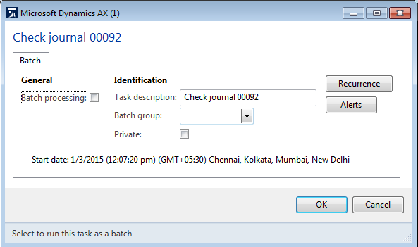 b.Journal: Journal number generates automatically as the number sequence is set to "Continuous" in this case.