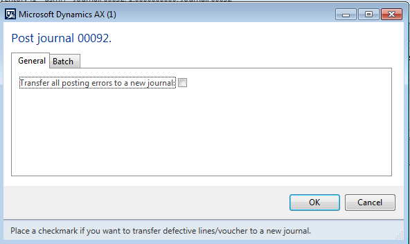 Note: Place a check-mark if you want to transfer all the defective lines to the new journal.