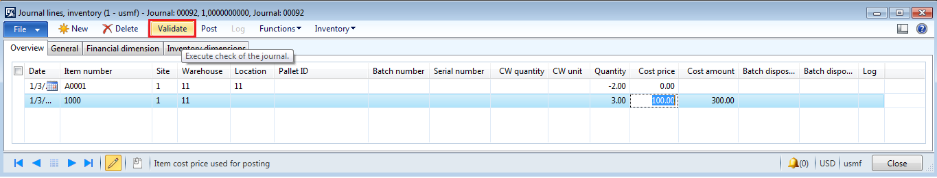 Inventory adjustment journal in AX 2012 R3 (Profit and loss journal in old AX versions)