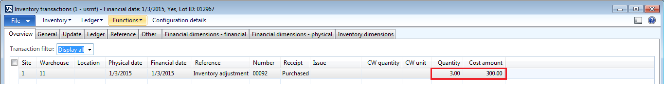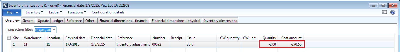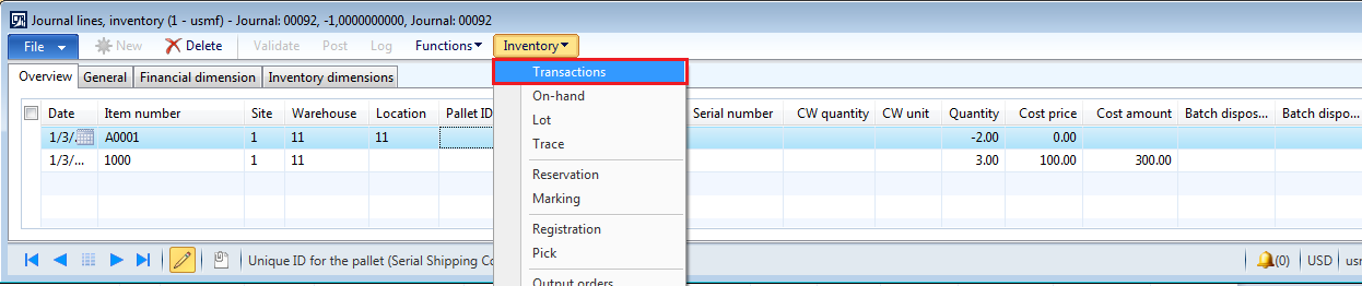 14. Go to inventory > transactions for the line which has positive quantity.