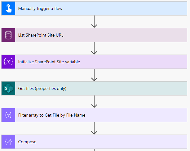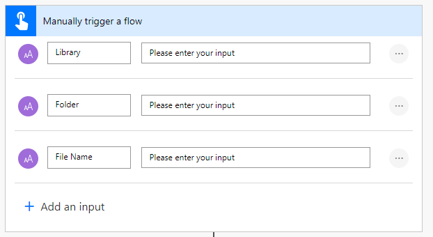 This is the child flow and it accepts the SharePoint document library, folder and the filename as parameters.2. SharePoint Site URL