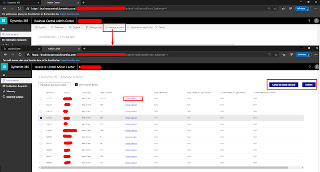 Also, if you see multiple sessions in Business Central Admin Center, you can cancel the session as well.