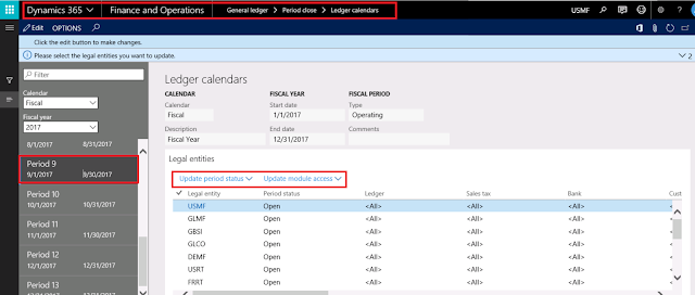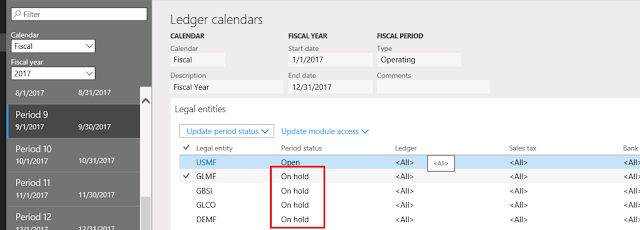Managing the fiscal period for multiple legal entities in Dynamic 365