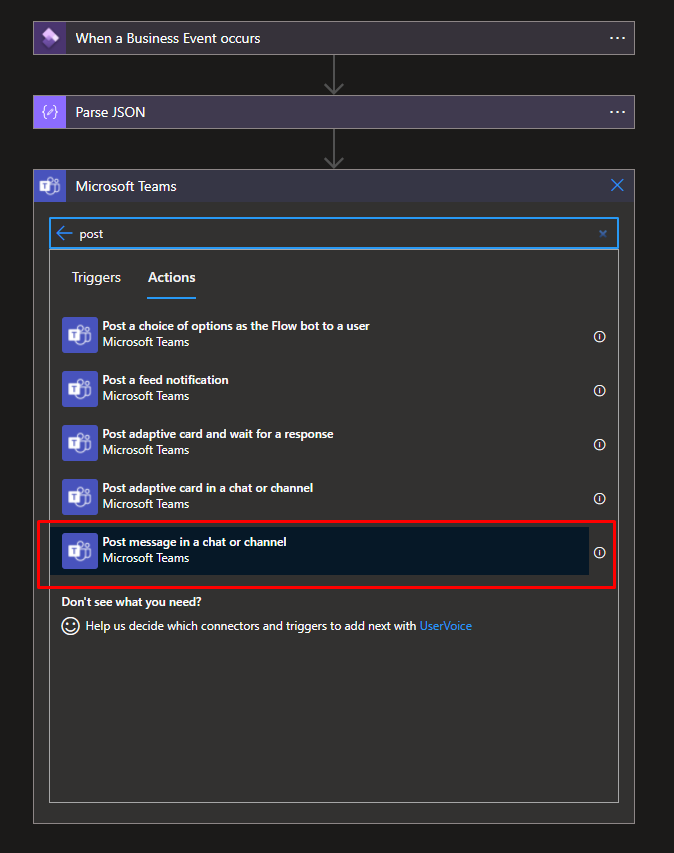 Select Post message in a chat or channel in Actions. Sign-in with a Microsoft Teams account.