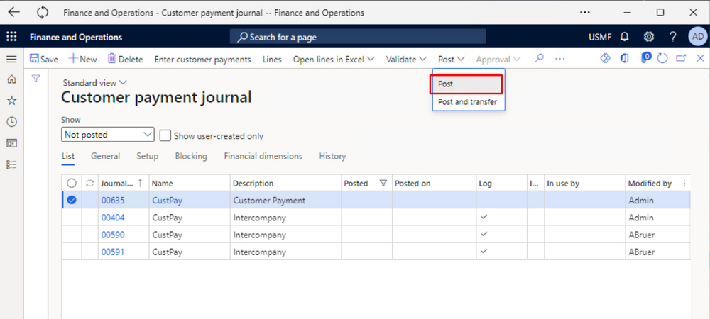 Post a Customer payment journal in Finance and Operations.