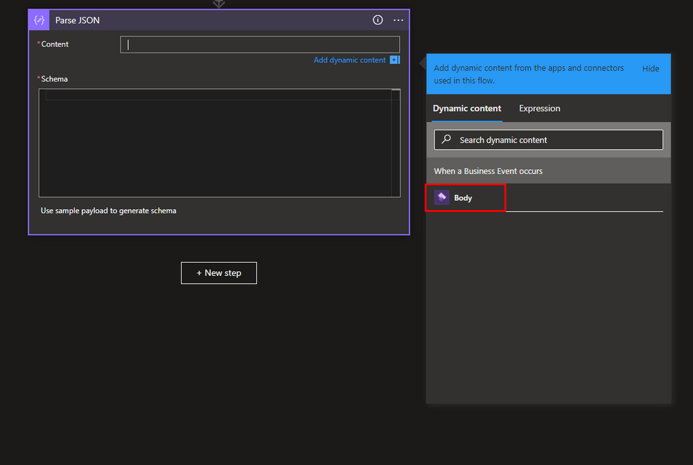 Then click Body in Dynamic content for Content.