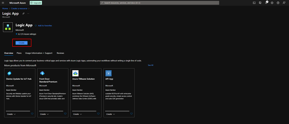 In Azure Portal Home Page click Create a resource and type Logic App then select.