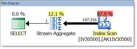 This is what I was seeing with the MAX function on the TRXSORCE field of IV30500. Every single record was being returned by the Index Scan.