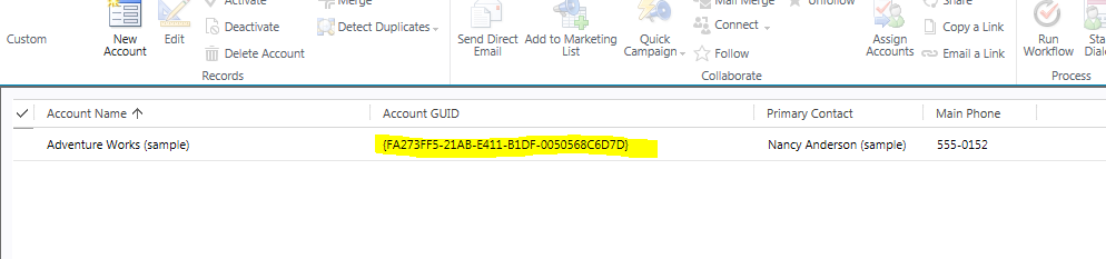 1. Create one text attribute in Account or contact entity.. say Account GUID.