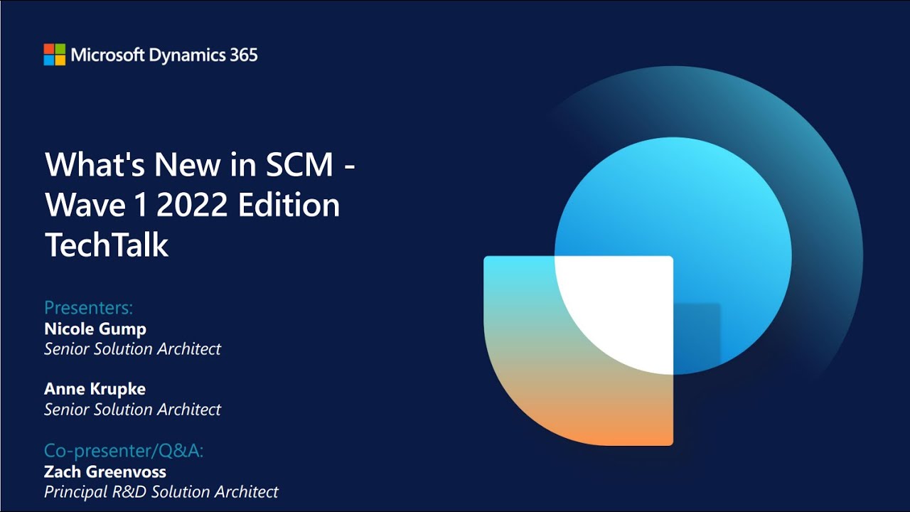 This TechTalk will cover the new features in Dynamics 365 Supply Chain Management that were introduced in Wave 1 2022, which covers the April through September 2022 timeframe.