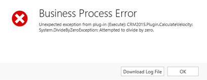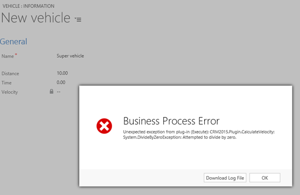 We don't need to click on Download Log File to view the details of the error – the Plug-in Trace Log tells us everything we need to know.