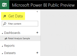 - From the Microsoft Power BI Public Preview navigation pane, click Get Data.