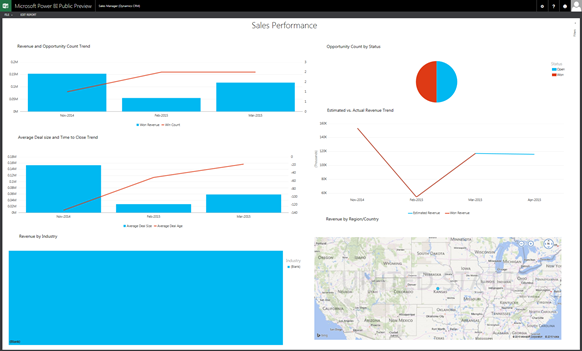 In this blog I will briefly describe how to connect your Microsoft Dynamics CRM Online Organisation to the new Microsoft Power BI Portal Public Preview in order to be able to access, create and use dashboards and reports similar to the following Sales Manager (Dynamics CRM) dashboard.