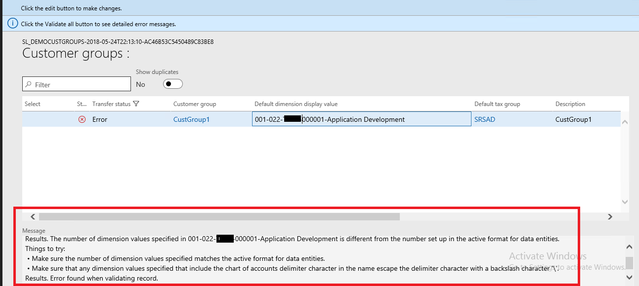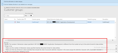 Lets assume there is one of the common scenario in which you are uploading records for customer groups along with its financial dimensions using data entities.