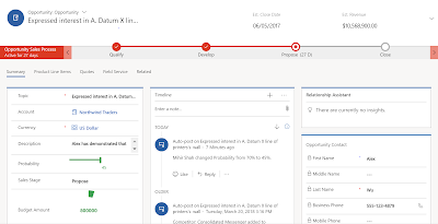 This leverages the data integration within Dynamics 365, Office 365 and Microsoft Exchange and Artificial Intelligence capability to derive insights to help the Sales person to better prioritize customers, leads and opportunities and improve their relationship health. (I will be writing another blog to detail this soon)
