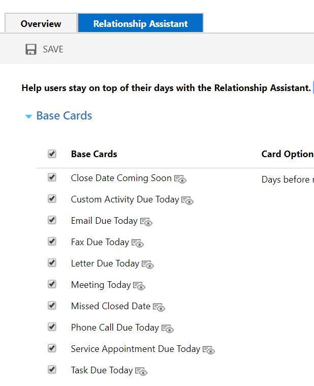 The components of embedded intelligence in the Sales app include – Relationship assistant, auto capture and email engagement. In my demo environment the intelligence configuration was still in the Settings > preview tab as shown below.