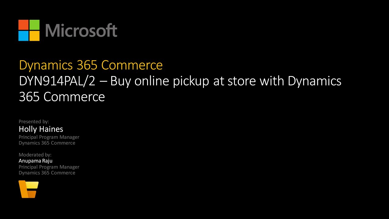 View this session to discover existing capabilities and recent product enhancements that help retailers facilitate a comprehensive Buy-Online, pick up In-Store order processing flow with Dynamics 365 Commerce.