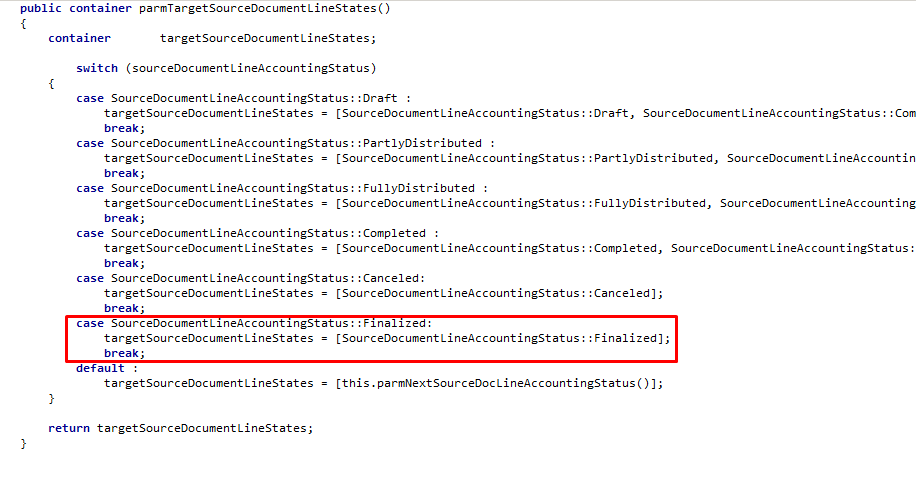 Change the code in the SourceDocumentLineStateModel.parmTargetSourceDocumentLinesStates() method: