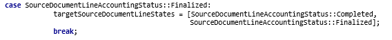 The problem is that the standard AX code requires sourceDocumentLine table to hold a record with status “Finalized“, but there is a status “Completed“.