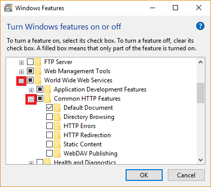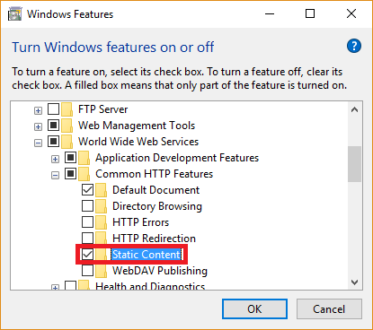 Installing IIS Features on Windows 8 and Windows 10: Static Content
