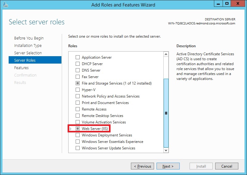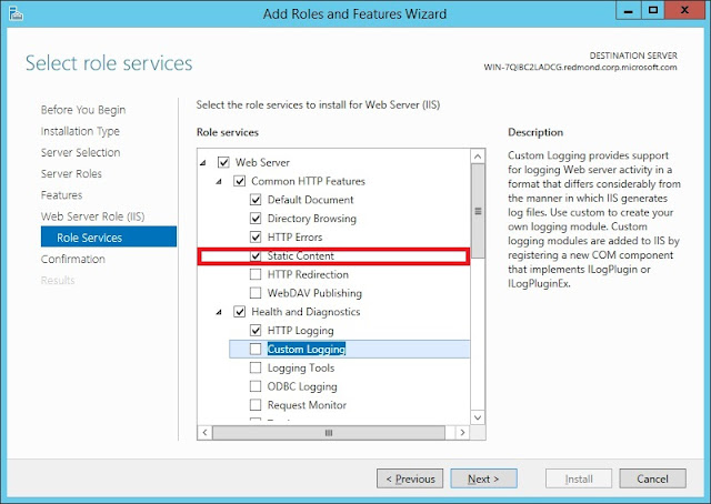 Installing IIS Features on Windows Server 2012 R2: Static Content