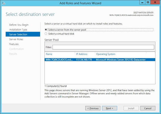 5. On the Server Selection page, select Select a server from the server pool, and then select a server.